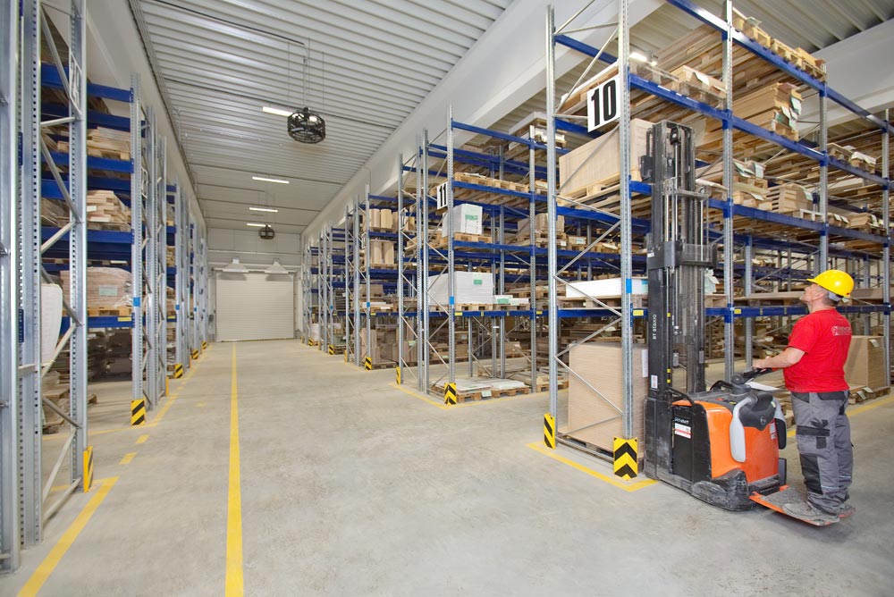 Všechny tvarově opracované dílce, které jsou připraveny pro nalakování, jsou umístěny do našeho skladu polotovarů. Jelikož je důležité uchránit tyto kusy před vlivem přírodních podmínek a před mechanickým poškozením, vlastníme nové skladovací prostory, které jsou vybaveny vhodnými regály. Aby se zabránilo znehodnocení dřevěneho materiálu, udržujeme rovnovážnou vlhkost vzduchu v optimálním rozmezí pro ideální vlhkost dřeva. Díky těmto mechanismům předcházíme případným problémům, které by kvůli nesprávné manipulaci vyvstaly při montáži a maximalizujeme efektivitu při rámcových objednávkách.